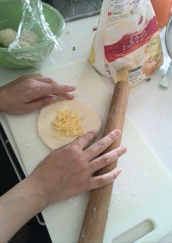 これは中にチーズを入れています。チョコを入れた物にはクルミも入れたかったのですが…(しかしそんなものはなかった!)