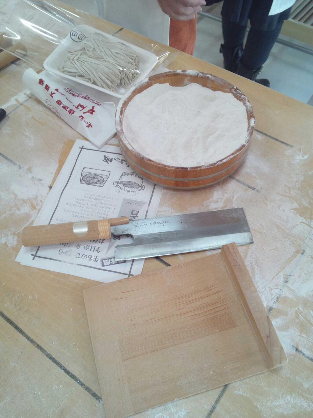 蕎麦打ちの道具もたくさん見たり使ったりすることができました。
